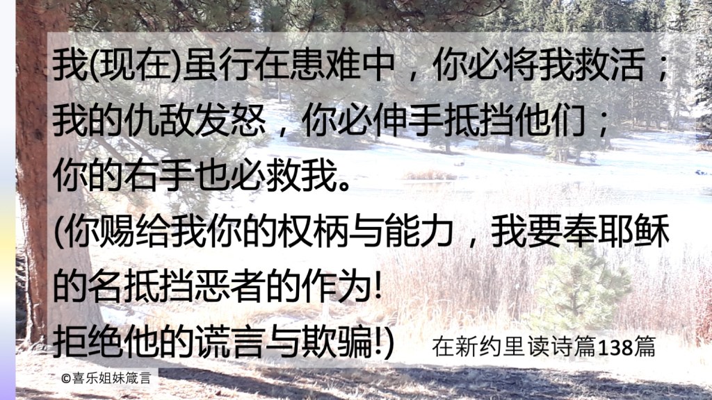 (你赐给我你的权柄与能力,我要奉耶稣的名抵挡恶者的作为!拒绝他的谎言与欺骗!)