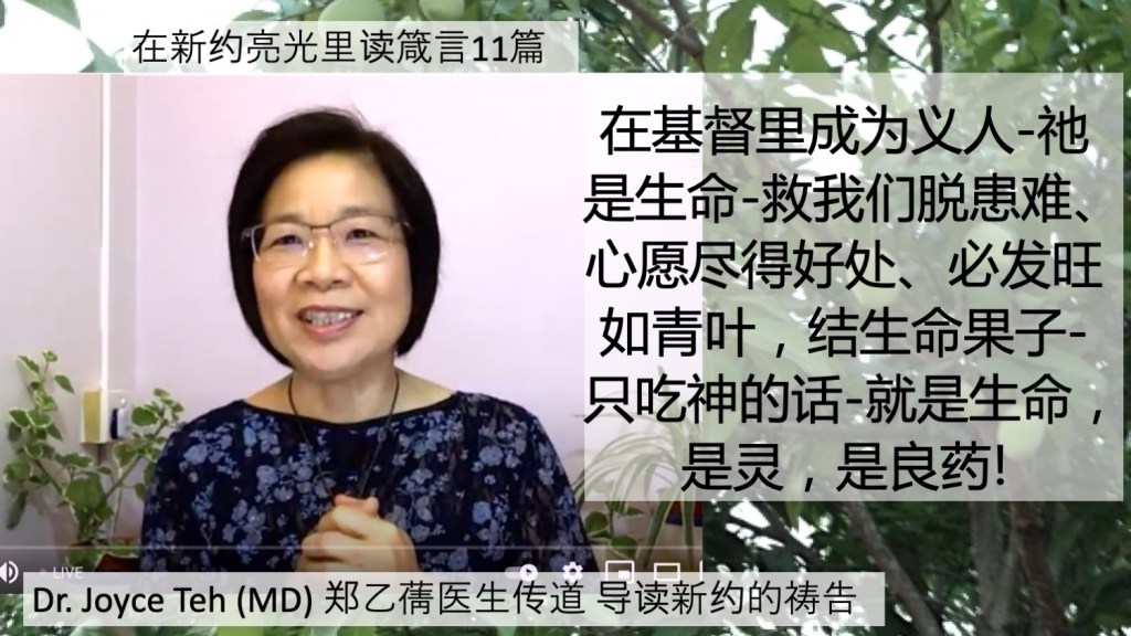 Dr. Joyce Teh (MD) 郑乙蒨医生传道 (©喜乐姐妹箴言)