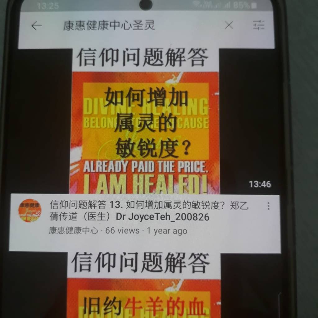 注意:如果你用手提电话到油管去,你必须在你的电话键盘上输入“康惠健康中心圣灵”这句话才能看见以上清单。也要看清楚在视频下面是康惠健康中心上载的(因为YouTube油管会把别人上载的视频也加插在搜索清单里面)。