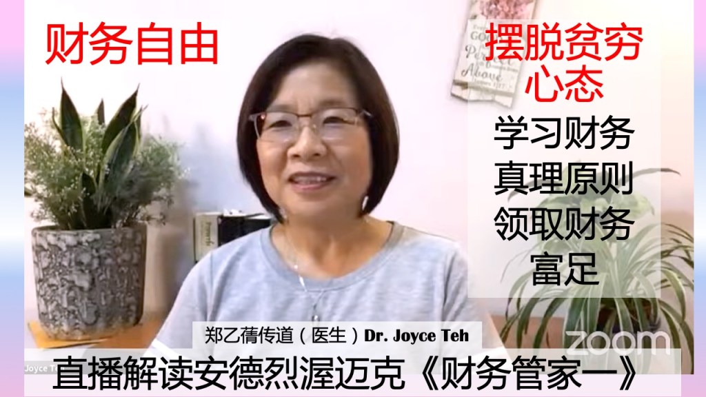 直播第一章讲解 作为一个管家《圣经的财务管理》来学习体验财务自由Financial Freedom 《安德烈牧师书本》郑乙蒨传道读书分享 Dr. Joyce Teh 20220217 https://youtu.be/vYsFQksnYLE