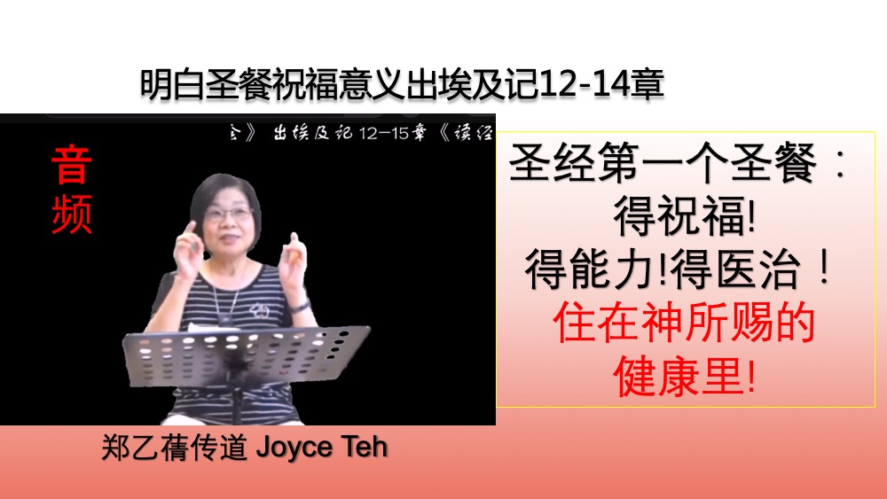 下载音频:从第一个逾越节看见圣餐的大能!神领人出埃及是为了帮助人进入丰盛应许之地!明白圣餐的意义得祝福!得能力!得医治!住在神所赐的健康里! # 不明白圣餐得意义变成宗教仪式!没有能力!