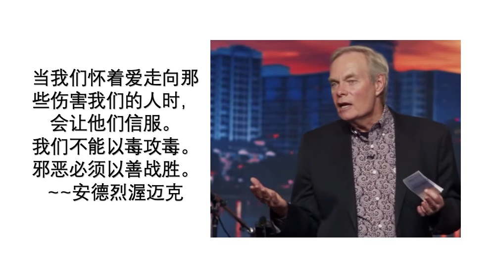 “当我们怀着爱走向那些伤害我们的人时,会让他们信服。 他们知道如果他们在我们的位置上会有什么反应,并且看到我们在不利的情况下仍然以神的爱对待他们,这表明了我们有一些他们没有的特别的东西。 保罗应该知道。 他看到司提反原谅并为那些用石头砸死他的人祈祷。我们不能以毒攻毒。邪恶必须以善战胜。“(安德烈渥迈克)(罗马书 12:21 你不可为恶所胜,反要以善胜恶。)安牧本身也曾经经历过许多被人因为他传讲圣经真理而迫害他,侮辱他,弃绝他。可是他拒绝被冒犯,紧紧抓住圣经真理不放。读他的罗马书注释可以看见他的圣经立场明确,并且应用了许多他的生活例子和经历,以及他读了54年圣经从神领受的丰富亮光!油管直播:https://youtu.be/e0-XX9QTul0