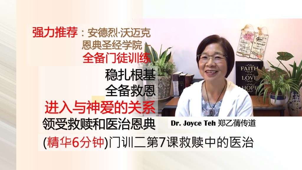 完整教导篇(50分钟):安德烈渥迈克门徒训练二 第7课 救赎中的医治 – 救恩包括: 罪得赦免 + 病得医治!天父想要我们都拿到!住在属天健康里! 郑乙蒨传道 20220721(视频链接): https://youtu.be/U8FiYZ9d8yE