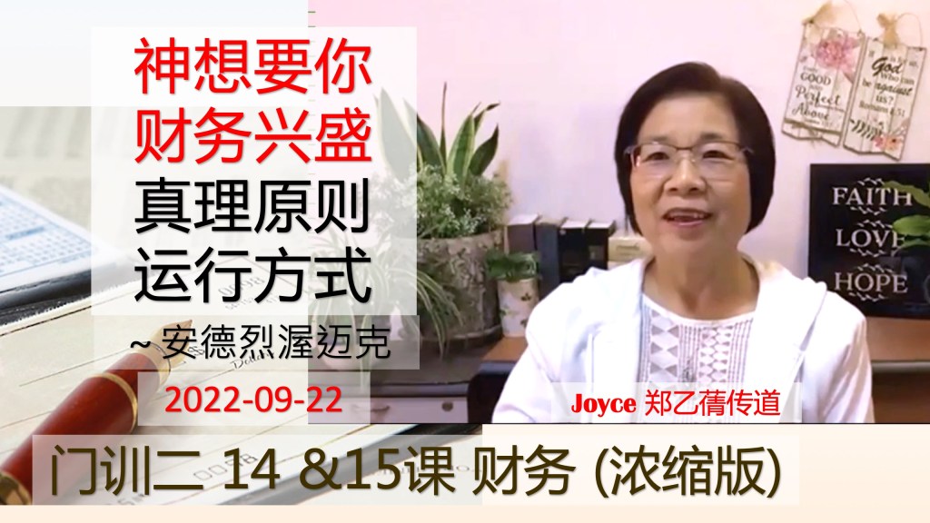 门徒训练 二 第14课 财务管理(上)神想要你凡事兴盛!我们是神财务的管家!所以,明白神在财务方面的心意,非常重要!郑乙蒨传道(医生)211104