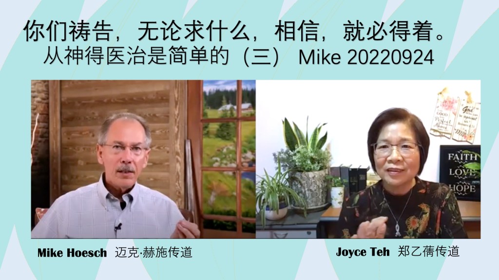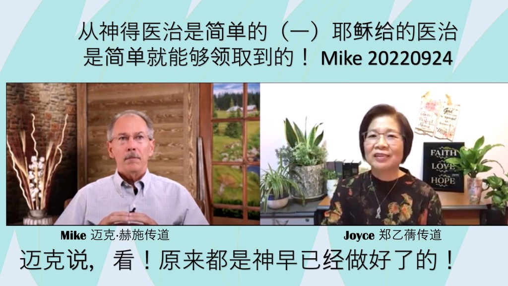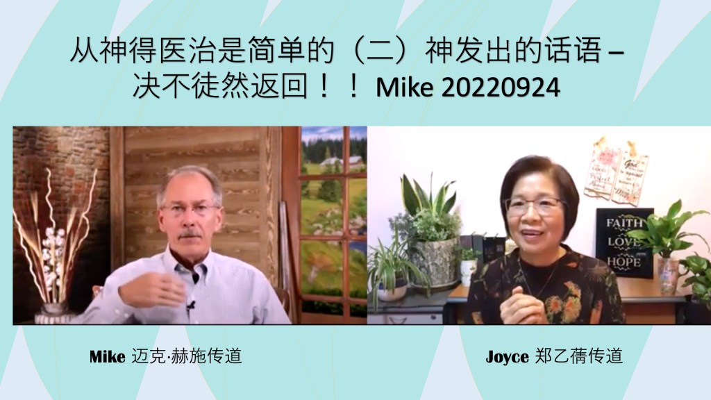 2 从神得医治 – 是简单的(二)神发出的话语 – 决不徒然返回!迈克 Mike 20220924: https://youtu.be/0SC6VUdI4lE