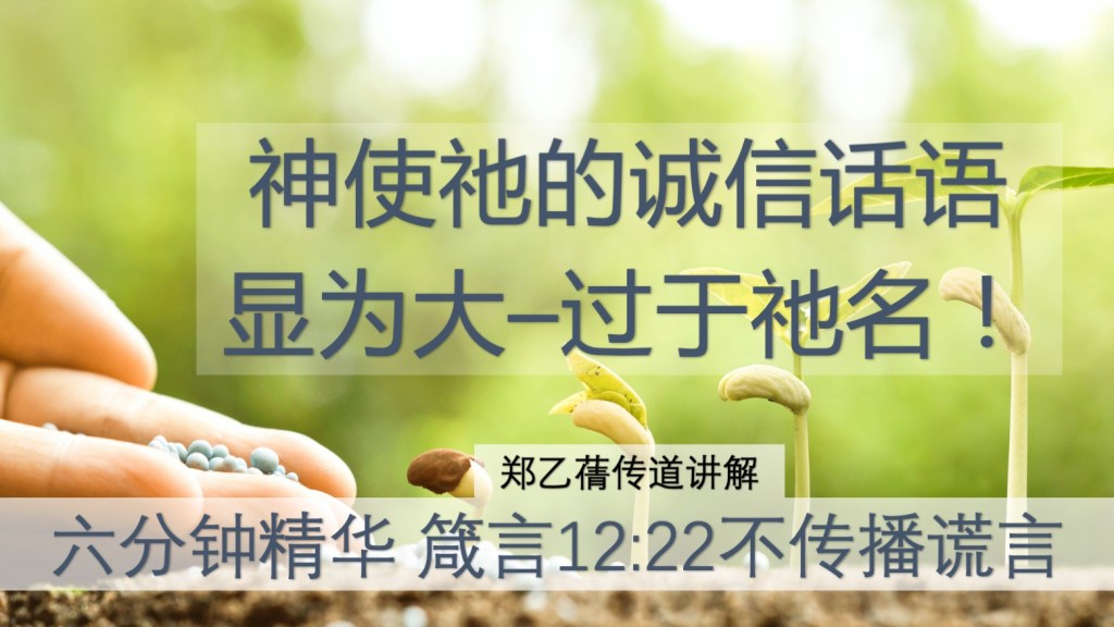 六分钟精华箴言12章22节 神使祂的话显为大,过于祂的名!一定要明白:谎言的严重性–不要·传播!《安德烈牧师箴言巨著》 郑乙蒨传道分享 20221011:https://youtu.be/wqwjjgGcjEU