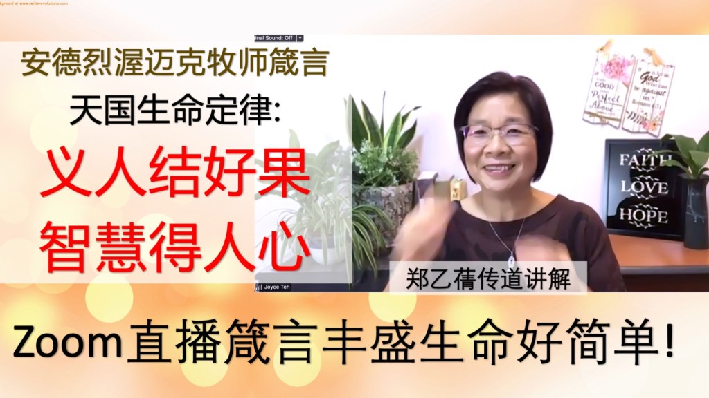 鼓励大家去看之前的现场录影视频:神的智慧 – 箴言《安德烈巨著》 郑乙蒨传道读书分享:视频链接:https://youtube.com/playlist?list=PLbXsm6kaXq7ncY_Z9wZdT2dDbMuYA7jMC