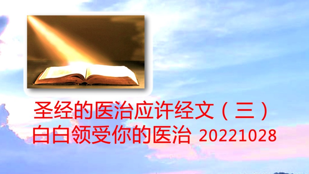1圣经的医治应许经文(三)白白领受你的医治 20221028: