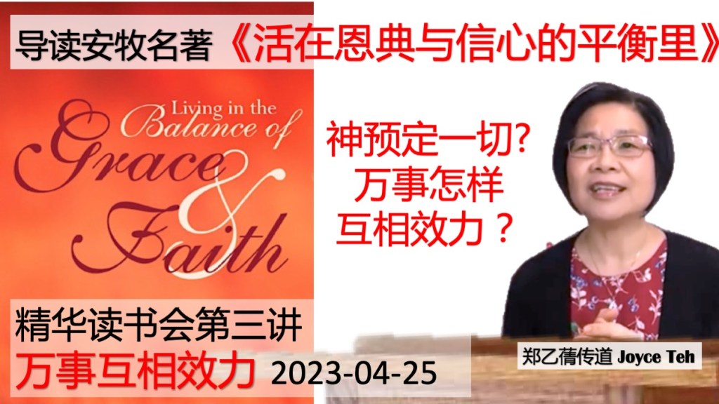 2023读书会:《活在恩典与信心的平衡里》 第三讲 神预定一切吗? 人无能为力吗?怎么办?来,以真理破除谎言! 郑乙蒨传道分享 2021录制 20230425重播:以下是这课YouTube视频链接