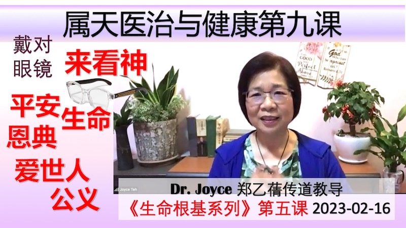 2023 这系列个别视频的链接: 1第一课 圣经最大的启示 – 神对你的爱 – 属天医治与健康《生命根基系列之一》读神的话语 – 从神领受的最大启示是:认识及明白神对你的爱!郑乙蒨传道 Joyce分享20230105 : • 圣经最大的启示 – 神对你的爱 – 属天医治与健康《生命根基系列之一》读神… 2 第二课 开启圣经最重要的钥匙之一 :灵魂体 – 看见神是这样造你的!第二课:灵魂体—开灵眼,看神这样造我!明白了你就会开始活出主耶稣说祂带来的丰盛生命!2023 属天医治与健康《生命根基系列》第二课 郑乙蒨传道Joyce分享20230105: • 开启圣经最重要的钥匙之一 :灵魂体 – 看见神是这样造你的!2023 属天… 下载这课的讲义和音频的网站链接: https://wp.me/pbNvPc-1vP 第二课 2023 灵魂体道具示范 Joyce 郑乙蒨传道 原创和教导如何用这简单又创意方法示范灵魂体真理!学习了你也可以去和人分享!自己得到突破,教你亲爱的人也一样得到突破! • 2023 灵魂体道具示范:看见神是这样造你的!明白圣经最重要的钥匙之一 :… 3 第三课 从圣经最重要的是看见灵魂体 – 看神是这样看你的,你就不一样了! 属天医治与健康(七)《生命根基系列》第三课 郑乙蒨传道 Joyce Teh 20230202 : • 从圣经最重要的是看见灵魂体 – 看神是这样看你的,你就不一样了! 属天医治… 灵魂体道具示范:看神是这样看我的! • 2023 灵魂体道具示范:看神是这样看我的!属天医治与健康《生命根基系列》… 4 第四课 一定要看见你拥有的权柄!《生命根基系列》 第六讲 勇敢地应用,来经历神的大能!胜过一切的灵,断没有什么可以伤害我们!郑乙蒨传道分享 20230223: • 一定要看见你拥有的权柄!《生命根基系列》 第六讲 勇敢地应用,来经历神的大… 5 第五课 如何正确看神?!戴对了眼镜看见不一样了!神的话能够使你认识爱你且伟大的神!《生命根基系列》第五课 《属天医治与健康》郑乙蒨传道Joyce Teh 分享 20230216: • 如何正确看神?!戴对了眼镜看见不一样了!神的话能够使你认识爱你且伟大的神!… 分享 莎莉癌症末期得医治见证!将失去的夺回来! 20230216: • 分享 莎莉癌症末期得医治见证!将失去的夺回来! 20230216 6 第六课 读圣经如照镜子 -开心思看自己!《生命根基系列》:原来我是在基督里,是神所爱的杰作,是宝贝!你的灵与主联合为一得胜有余!郑乙蒨传道Joyce Teh 分享20230209: • 读圣经如照镜子 -开心思看自己!《生命根基系列》第四课:原来我是在基督里,… 分钟问题解答: 所服事的人没有得着医治,觉得没有尽到责任而被定罪,怎么办?属天医治服事者如何面对挫折?郑乙蒨传道 20230209: • 7分钟问题解答: 所服事的人没有得着医治,觉得没有尽到责任而被定罪,怎么办…