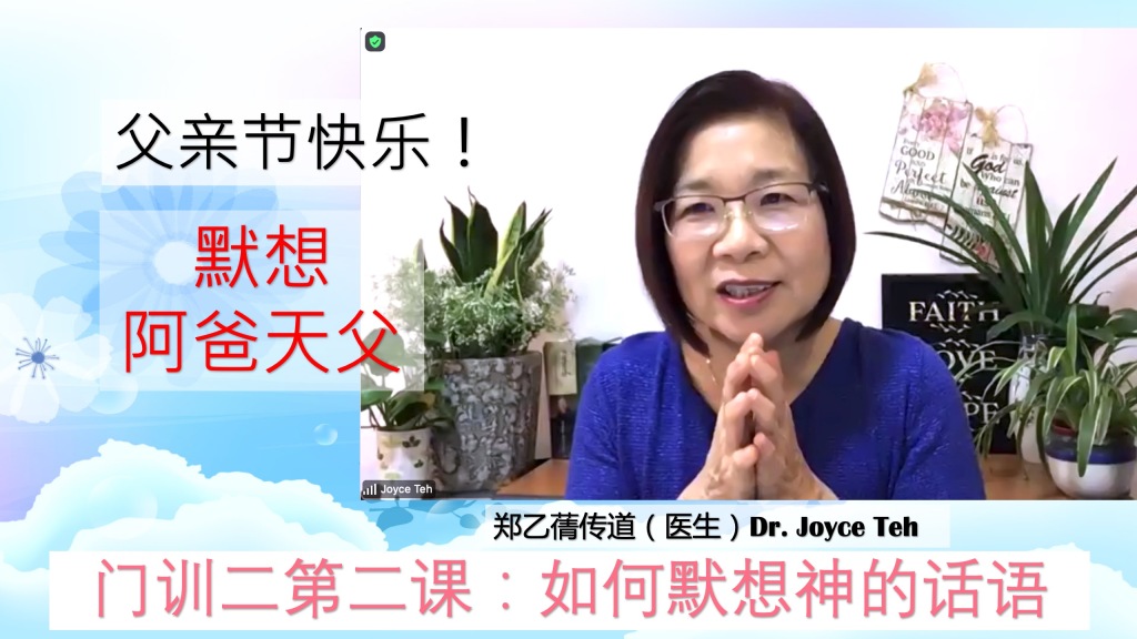 请你测试一下,回答这问题:“默想”是什么意思?下面这一课不一样,郑乙蒨传道 Dr. Joyce 带领和示范如何操练默想神(阿爸父Abba Father)!