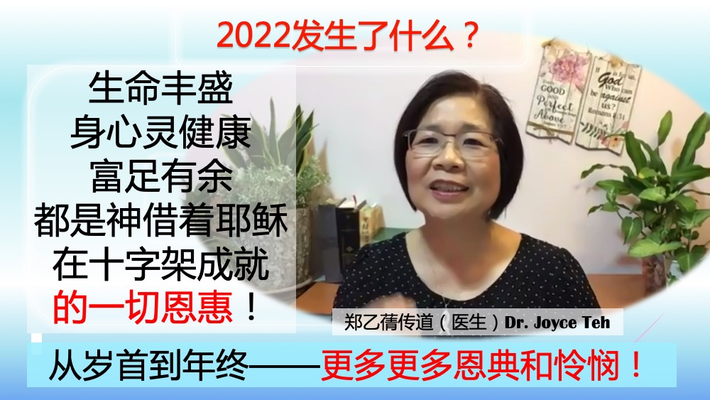 2022是最多产的一年!郑乙蒨传道(医生) Dr. Joyce Teh,我们的导师,可以说是日夜马不停蹄的赶工,与时间赛跑!她开始了导读好几本安德烈渥迈克牧师的出名巨著,包括《神的智慧——箴言巨著》,《罗马书——恩典的杰作》,《圣经的财务管理——神的经济学》,属天医治与健康的《神要你健康》系列,全备门徒训练三个阶段(48课)的直播和与学员互动的课程,和邀请外国讲员以中英语进行的灵魂体线上直播教课等等。