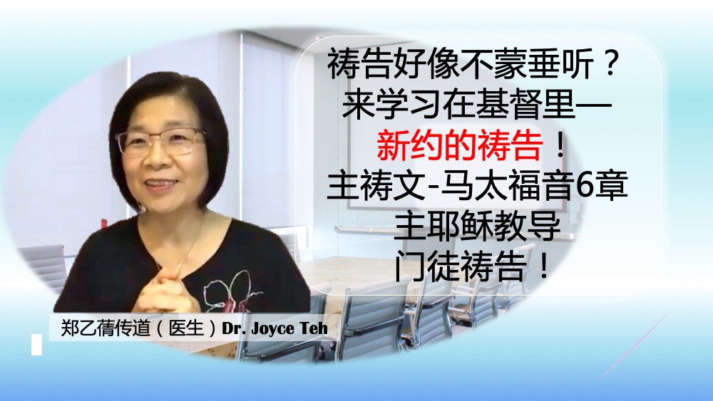 从新约看主耶稣教导我们箴言祷告——主祷文 – 马太福音第6章 – 主耶稣教导门徒祷告!郑乙蒨传道(医生) Dr Joyce Teh 210614 https://youtu.be/DTYePZEb8jE?si=0zIDDnfNu2ohGy5Y