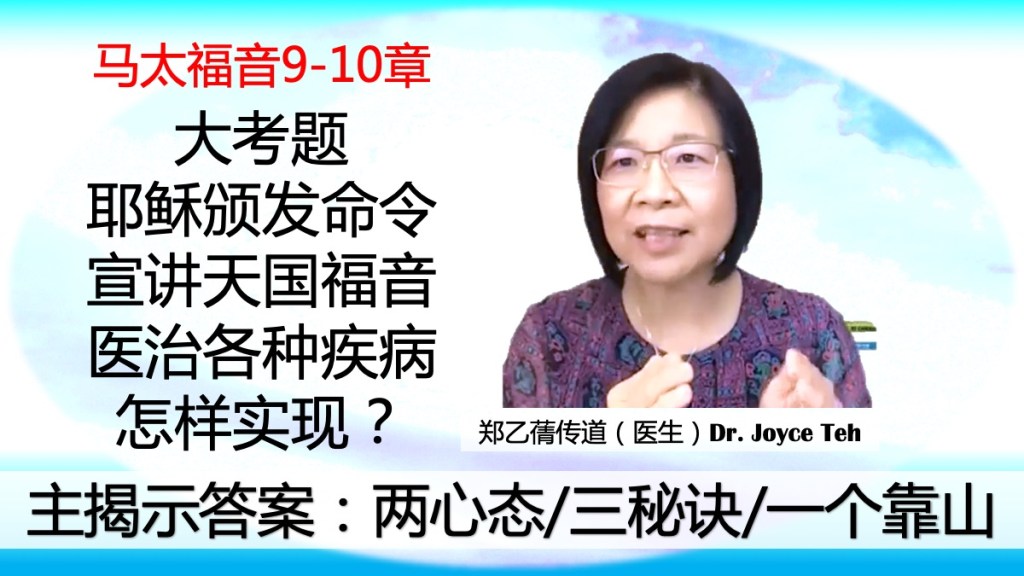 主耶稣升天前最后命令了什么?太9-10章 耶稣的命令与教导!庄稼熟了需要更多收割的工人!进入世界要灵巧如蛇!耶稣说逼迫是免不了的,那些人拒绝福音的是拒绝主,祂叫门徒不要把拒绝看成个人化!主也警戒门徒要有预备心,以正确的心态面对末日逼迫!郑乙蒨传道 Dr. Joyce Teh 解读 210523 下面是视频链接:https://youtu.be/w25G2V1ZEXU