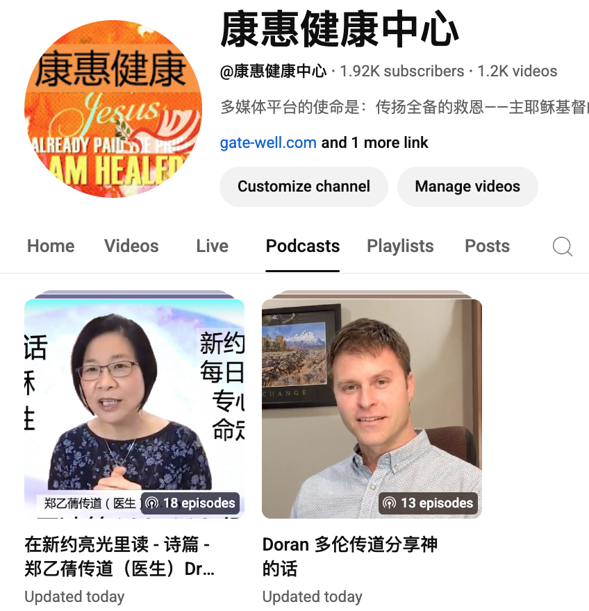 我们油管的医治与播客博客开始了!主页页面的一排菜单上你可以看见“播客”Podcast标签,点击就可以进去看看有什么适合你听的播客客了!以后我们会陆续更新加添许多郑乙蒨传道(医生) Dr Joyce Teh 和其他讲员的录音。谢谢你们来访!