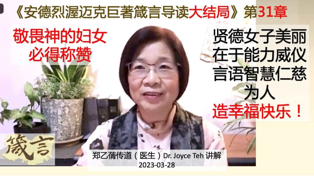 箴言31章 敬畏神的妇女必得称赞!安牧永恒的智慧蒙福生命总结篇 -美好贤德女子价值连城 – 谁能得着呢?女性妻子们的指示!《安德烈牧师巨著》 郑乙蒨传道分享:https://youtu.be/wEgWvBaVH3o?si=8Bu-wJlYJox8c7mY