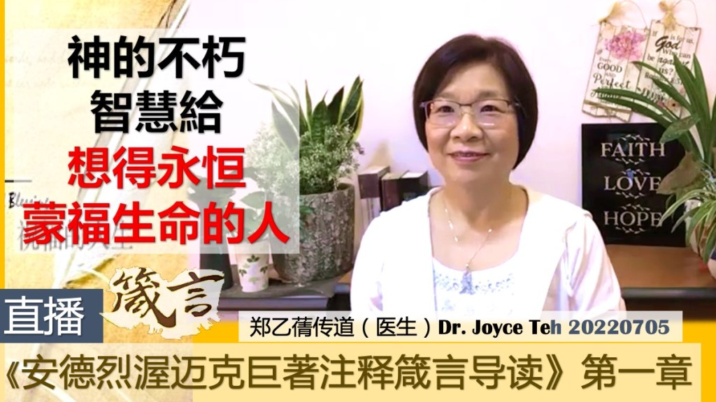 箴言第一章开始挖掘神赐给我们的宝藏 箴言 – 神的智慧 -敬畏神是知识的开始《安德烈牧师800页巨著》郑乙蒨传道医生 Dr. Joyce Teh 导读分享 20220705 有音频和讲义PDF下载链接: