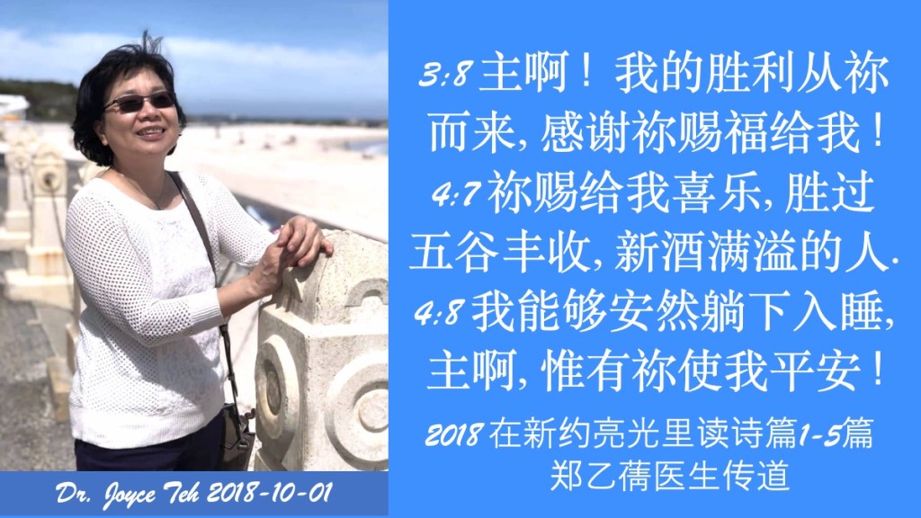 收集了郑乙蒨传道(医生) Dr Joyce Teh 最初用网上帖子方式把圣经福音好消息传扬的一些个人灵修默想资料,与大家分享!