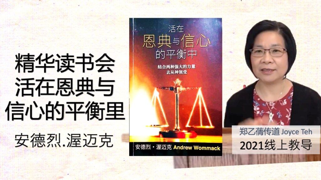 2023年线上,郑乙蒨传道医生Dr. Joyce Teh选择了重播导读安德烈渥迈克的名著 – 《活在恩典与信心的平衡里》用五课的时间讲解比较难懂的精华部分( 2021-01-30录制; 2023-04-11开始重播,最后一课在2023-06-13总结)