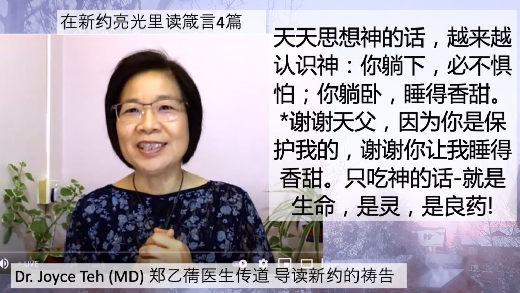 Dr. Joyce Teh (MD) 郑乙蒨医生传道 (©喜乐姐妹箴言)
