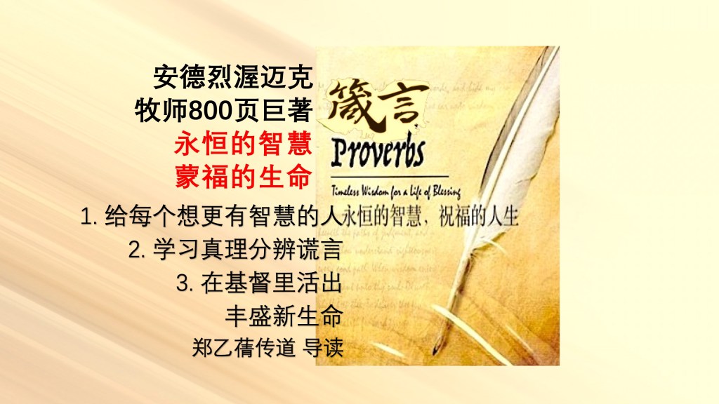 每周二晚上7:50 上箴言《安德烈渥迈克牧师800页巨作》下一课箴言12章在2022-09-20上课