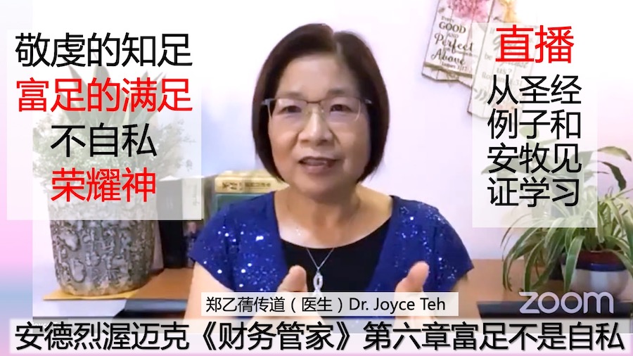 这课是安德烈渥迈克针对神学上的争论课题-基督徒可以富有吗?圣经怎样说?从圣经例子和安牧自己的见证学习!第六章 富足不是自私 《圣经的财务管理》 知足和更富足相抵触吗?真理破除苦难神学的谎言!从安德烈牧师书本学:怎样是敬虔的知足? 富足的满足? 不自私?富足如何 荣耀神 ?郑乙蒨传道与你分享 Dr. Joyce Teh 20220324 https://youtube.com/live/83zPl88Tt_s